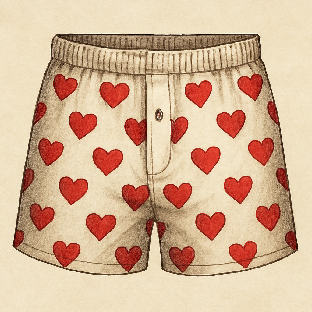 These luxurious white boxer shorts, adorned with bold red hearts, radiate a subtle aura of undeniable confidence.