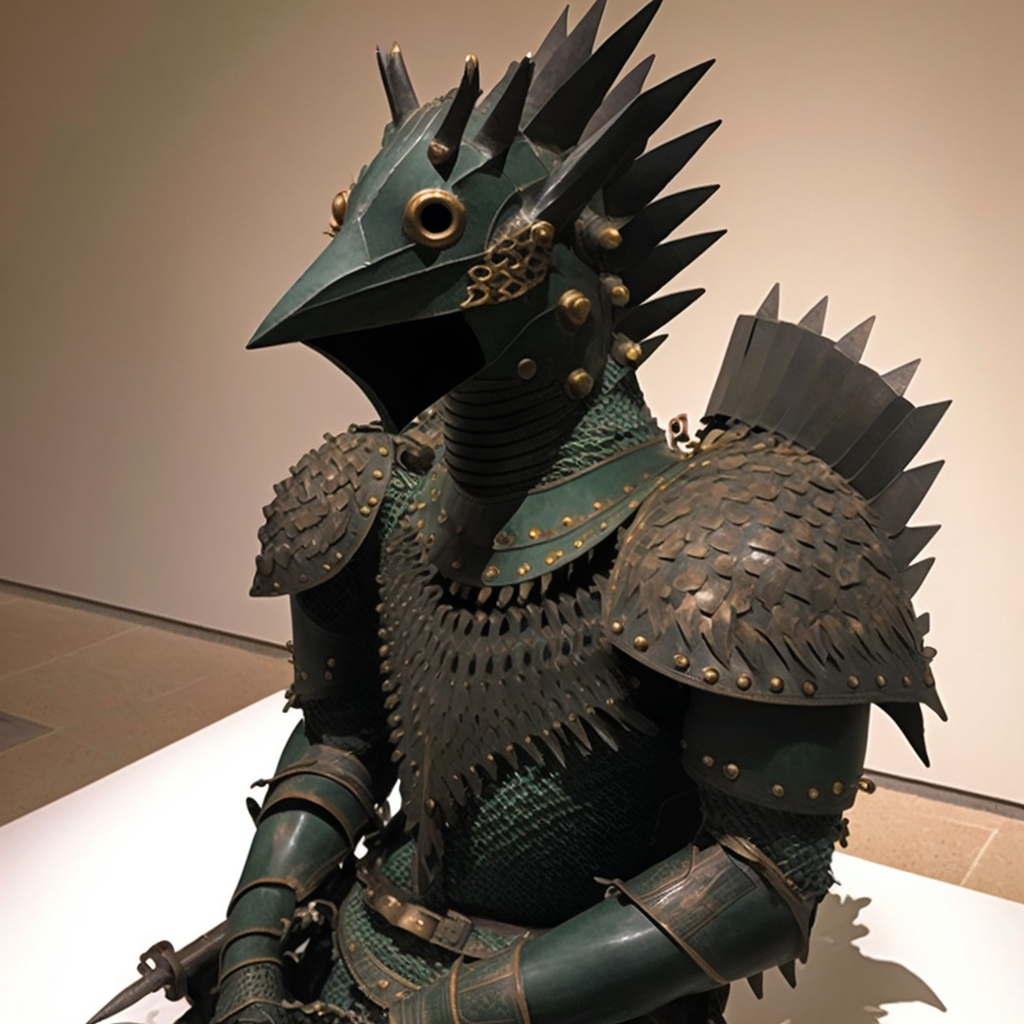 This armor is made from the scales of a basilisk, which are dark green and covered with spines. The scales are arranged in a pattern that resembles th...