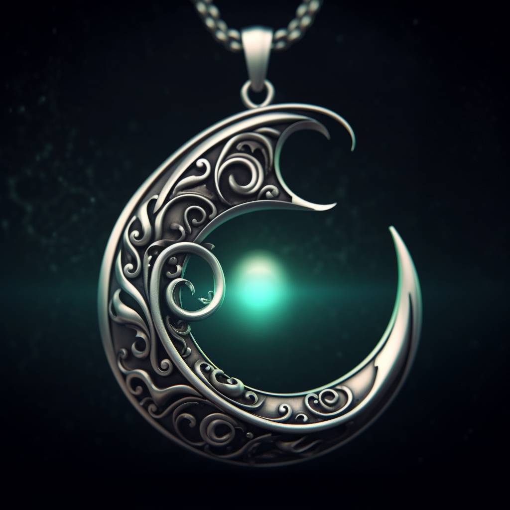 This silver amulet has a crescent moon pendant that glows softly in the dark